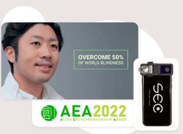 The Smart Eye Camera (SEC) is a portable, smartphone-based device developed by Dr. Eisuke to enhance eye care diagnostics. It enables detailed eye examinations, including cataract screenings, and supports remote consultations, making eye care more accessible and affordable, particularly in underserved areas.