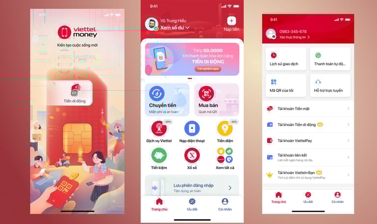 Viettel Money is a comprehensive digital financial ecosystem that enables users to transfer, deposit, withdraw, and conduct online transactions quickly and easily across multiple funding sources. Designed as a "smart money" solution, Viettel Money empowers individuals to improve their lives with financial services accessible anytime, anywhere, across multiple devices — without the need for a bank account or Internet connection.